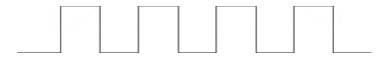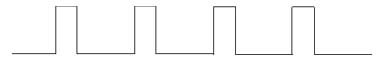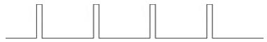 已经降到最窄了。如果输出电压电流继续下降,要求控制脉冲继续变窄,但PWM电路已无法满足,这时电路变为间歇工作, 形如: